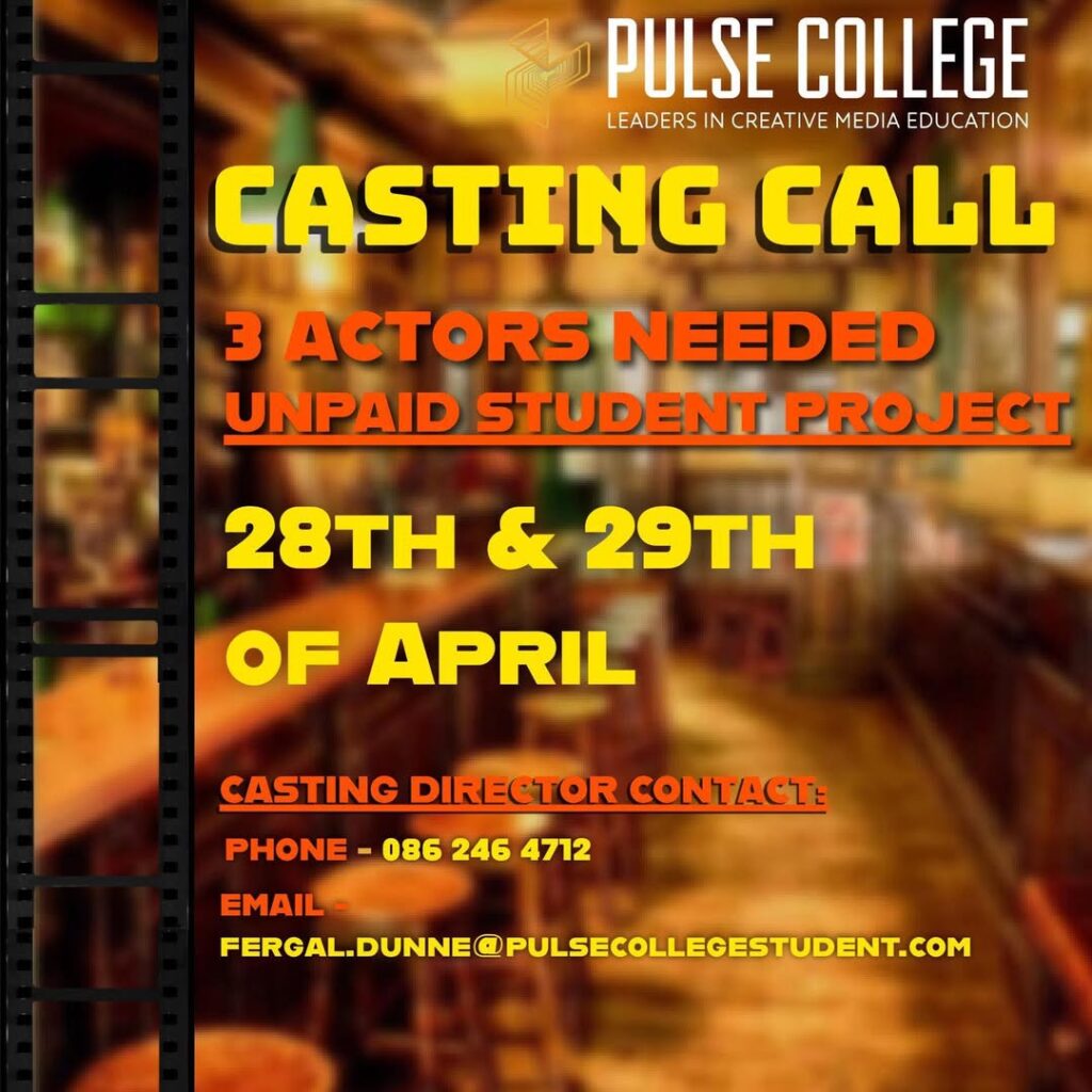 We’re looking for three actors for our end of year short film production for Pulse College. Age/Gender details are below.