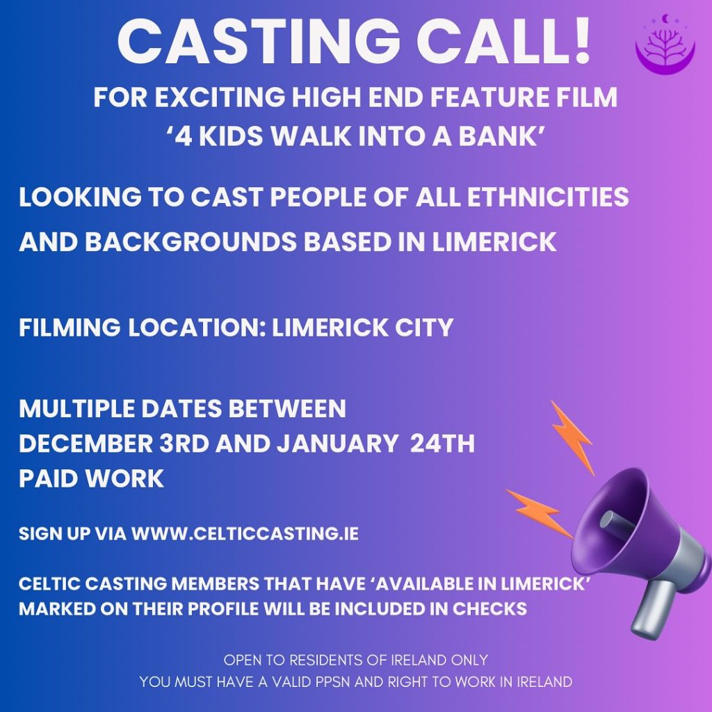 Casting Call- location Limerick-Feature FilmBren2024-11-26T10:37:32+00:00November 26th, 2024| Leave A Comment Cancel replyComment By using this form you agree with the storage and handling of your data by this website. *