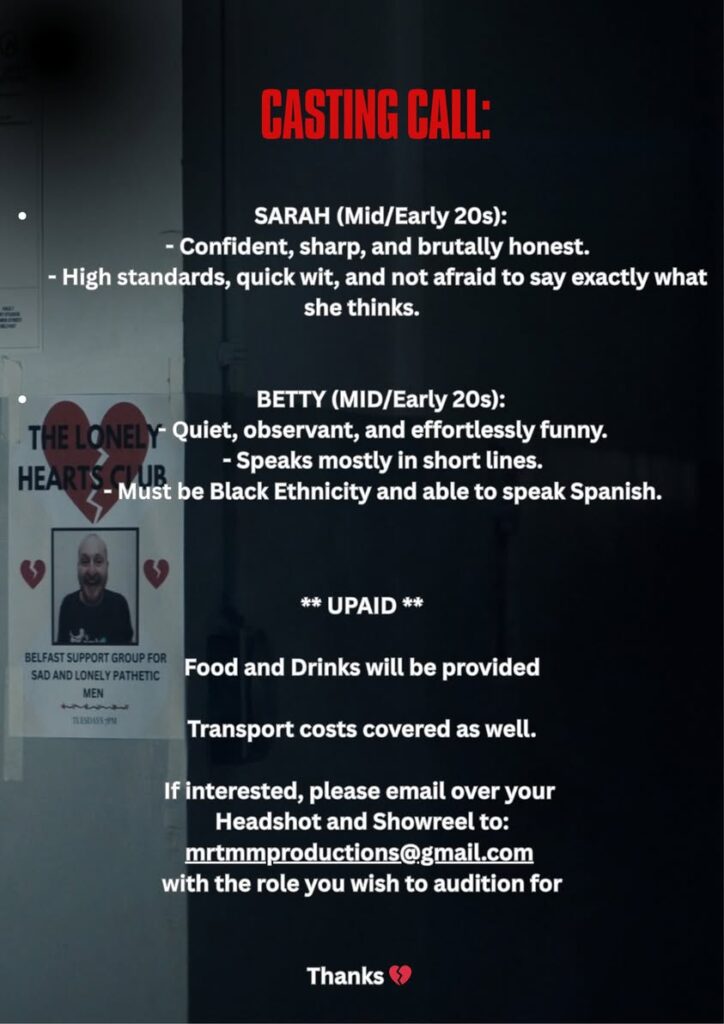 This is an unpaid project, but food & drinks will be provided and transport costs covered. It’ll be a fun shoot and a great laugh.